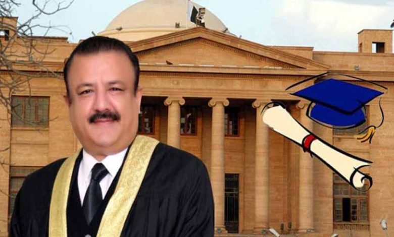 Karachi University’s decision to reject Justice Jahangiri’s degree is suspended by the SHC.