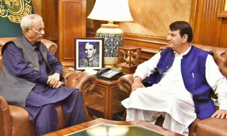 Sindh Governor Nehal Hashmi was visited by Federal Minister for Kashmir Affairs, Gilgit-Baltistan, and SAFRON Engineer Amir Muqam at the Governor House on Monday.
