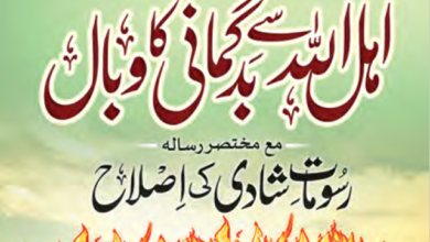 اہل اللہ سےبدگمانی کا وبال۔اصلاح رسومات شادی۔حق