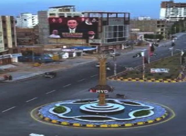 One commercial thoroughfare that is expanding quickly is the Autobahn Road. Its improved part passes by important landmarks like Fateh Chowk, Ghagra Mori, the Hyderabad-Mirpurkhas Road bridge, and the new vegetable market as it connects Hala Naka to the Hussainabad intersection (Giddu Chowk).