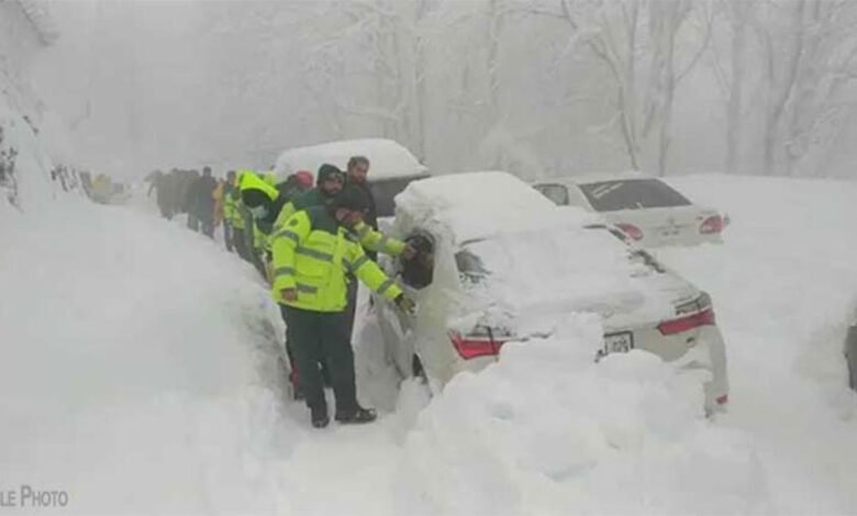 In Abbottabad, rescuers pull stranded tourists’ cars out of the snow