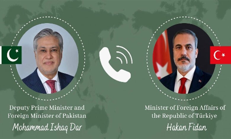 Deputy Prime Minister and Foreign Minister Senator Mohammad Ishaq Dar engaged in a telephonic dialogue with Türkiye’s Foreign Minister Hakan Fidan on Tuesday.