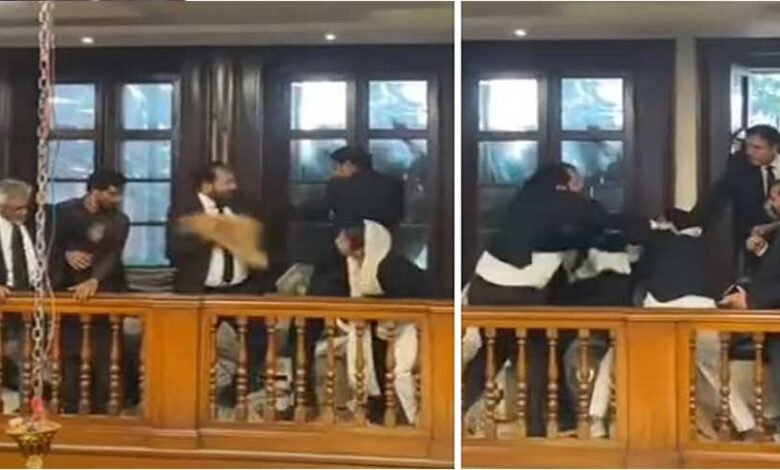 Lawyers fight during the tumultuous Lahore High Court Bar election.