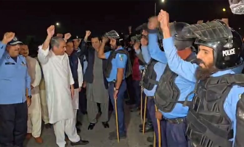 Interior Minister Mohsin Naqvi, along with Minister of State Talal Chaudhry, conducted a late-night inspection of Faizabad on Friday to assess the security measures in the federal capital due to increased political activity and security apprehensions. During the tour, Mohsin Naqvi evaluated multiple security checkpoints and assessed the deployment of the Islamabad Police and the Federal Constabulary (FC). He engaged with officers and troops deployed at various locations and commended their effort and commitment to upholding peace and order in the city. The interior minister, addressing the officers on duty, reiterated the government’s resolute position on upholding law and order, asserting that no group or mob will be permitted to march on Islamabad or any other city under any circumstances. Naqvi asserted, “The state will not allow individuals to assume the law into their own hands,” underscoring that safeguarding citizens’ lives and property is the government’s paramount concern. Naqvi greeted the officers and soldiers, praising their bravery and fortitude in executing their responsibilities under arduous circumstances. He also queried over their provisions for sustenance and rest, instructing the Inspector General of Islamabad Police to guarantee that on-duty personnel receive comprehensive logistical support and welfare amenities. The minister addressed the gathered security troops, stating, “You are all soldiers of Pakistan.” “You are instrumental in maintaining the rule of law, and the entire nation recognizes your contributions.” High-ranking officials, including the Chief Commissioner of Islamabad, the Deputy Commissioner of Islamabad, and other pertinent authorities, accompanied the minister during the visit. The inspection occurs as the federal government has heightened security protocols in and around the capital to avert any adverse incidents and maintain peace and stability.