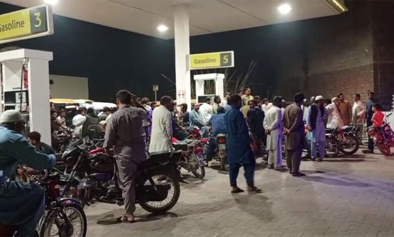 Petrol stations in Lahore have extensive lines due to concerns over fuel shortages.