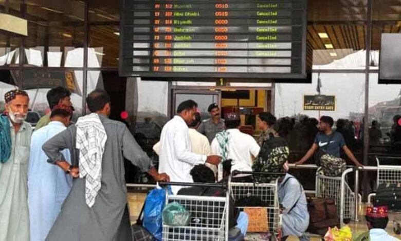 Thirty-two flights to Dubai, Abu Dhabi, Sharjah, Qatar, Kuwait, and Bahrain were canceled at Jinnah International Airport. Bacha Khan International Airport had 16 cancellations, Allama Iqbal International Airport had 20, and Islamabad International Airport had 28.
