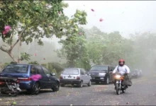 The weather in Karachi is dry, foggy, and the air is unhealthy.