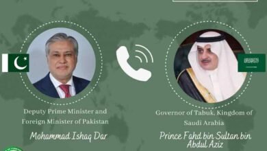 Ishaq Dar, the deputy prime minister and foreign minister, and Prince Fahd bin Sultan bin Abdul Aziz, the governor of…
