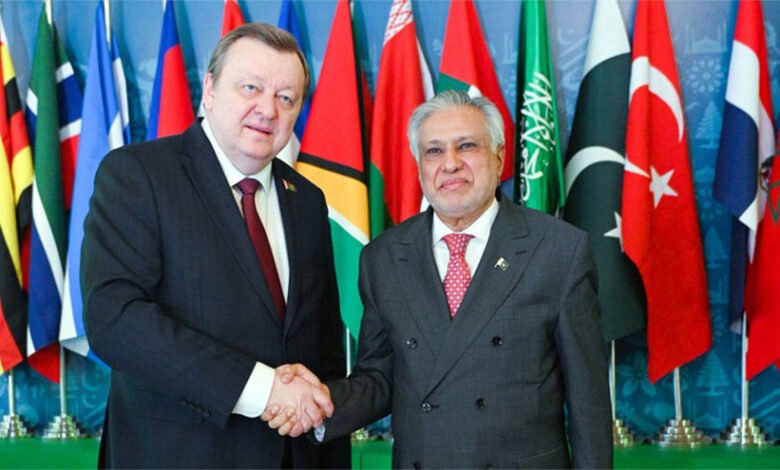 On Wednesday, Deputy Prime Minister and Foreign Minister Senator Mohammad Ishaq Dar reiterated Pakistan’s dedication to enhancing its bilateral relations with Belarus. He emphasised the enduring friendship and collaborative relations between Pakistan and Belarus. He conversed with Sergei Aleinik, the chairman of the Belarusian delegation, a Member of Parliament and former Foreign Minister of Belarus, during the Inter-Parliamentary Speakers’ Conference (ISC) in Islamabad. Ishaq Dar commended Sergei Aleinik for his involvement in the Inter-Parliamentary Speakers’ Conference.