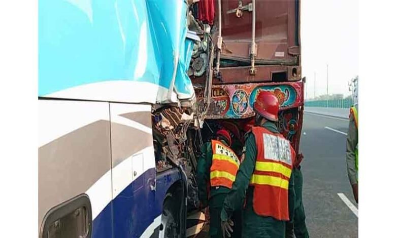 Motorway Police said that the bus lost control and crashed into a truck, then hit a tree on the side of the road. Soon after the incident, rescue teams raced to the area.
